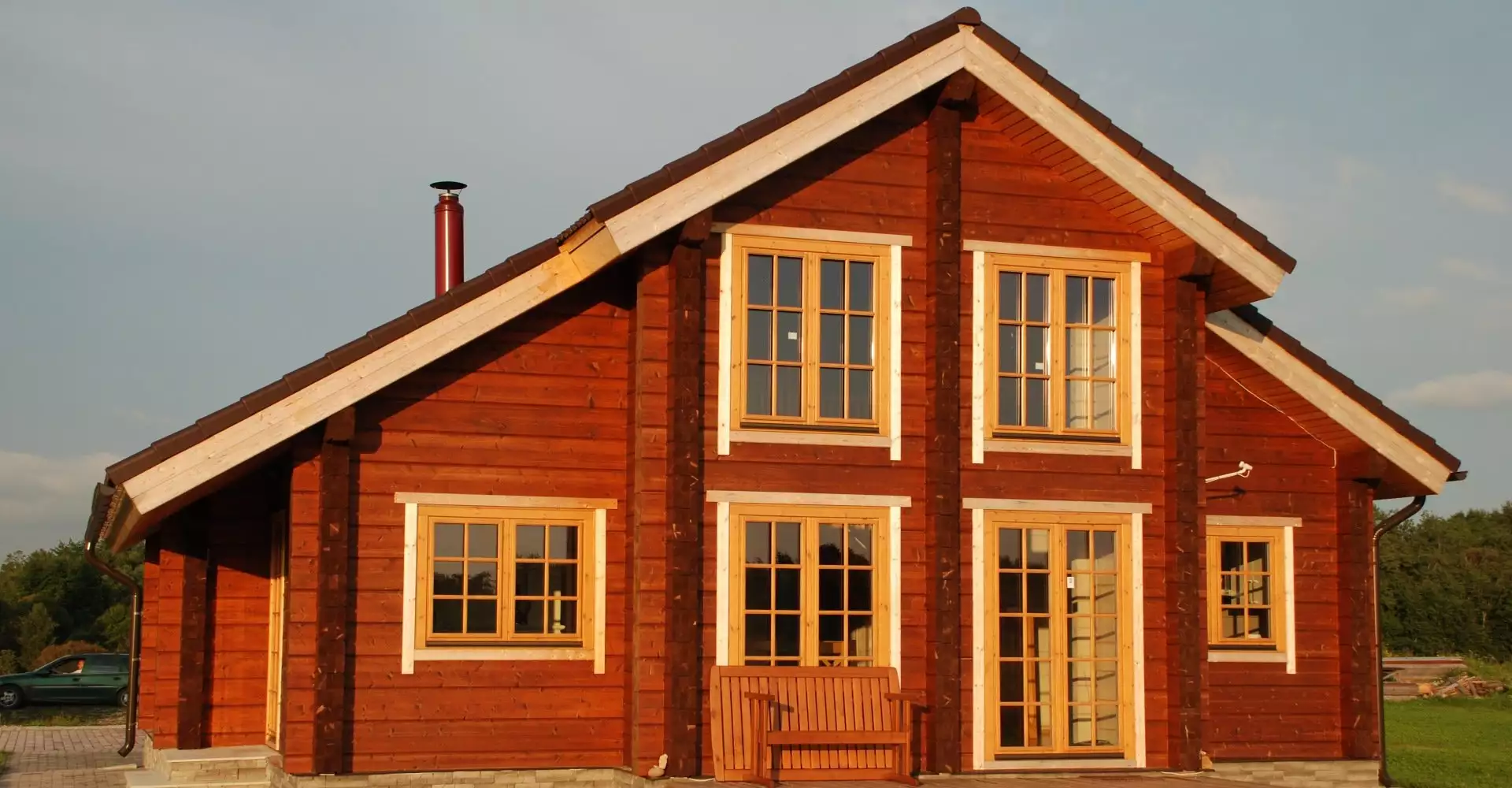 Площадь стен из бревен разных диаметров разная, но из расчета, что ширина лунного паза равна ½ диаметра (минимально допустимое значение согласно ГОСТ 30974-2002), принимаем за основу площадь вертикальных проекций с применением поправочного коэффициента 1,2.